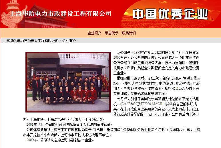 上海華貽電力市政建設工程有限公司,位于風景秀麗的上海市松江區佘山腳下,一九九八年四月八日經過改制后組建的股份制電力市政施工企業。