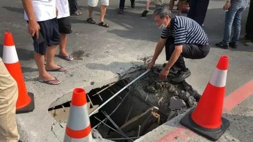 然而,為何路面會出現大坑洞?到場處理的臺南市府人員表示將再進行了解。