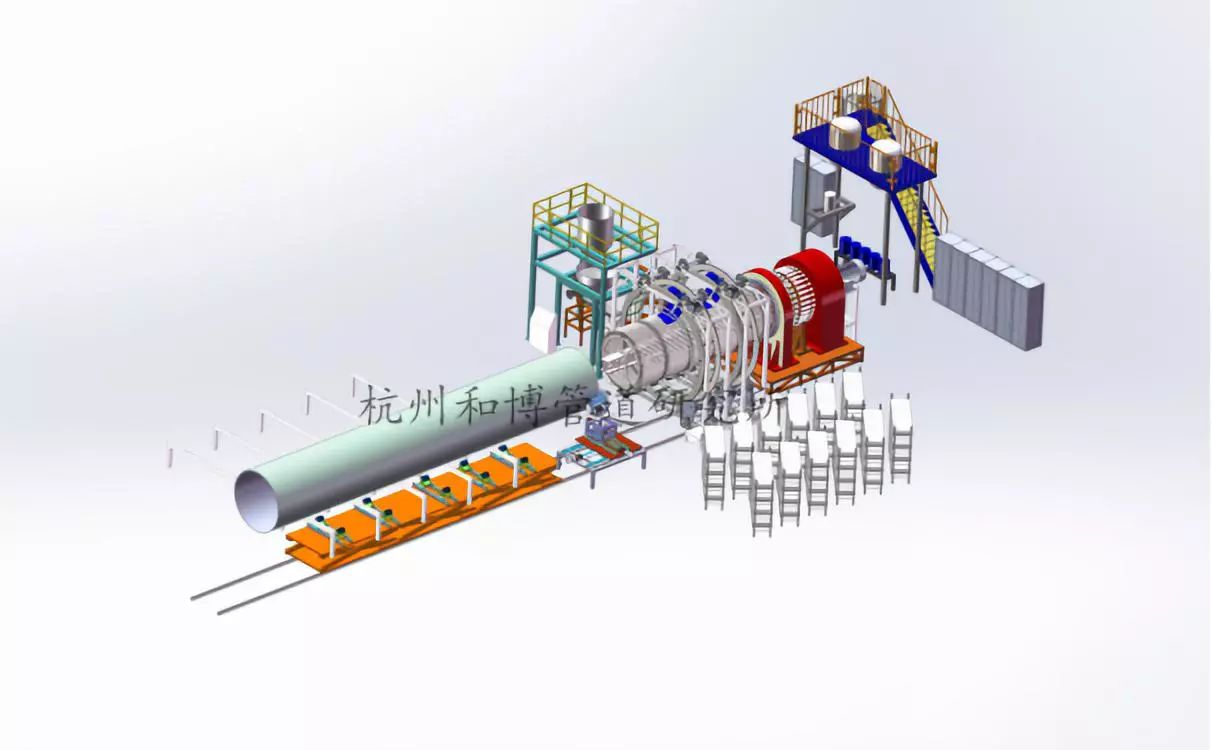 濕式連續(xù)纏繞,采用自主研發(fā)的新型連續(xù)纏繞設(shè)備,實(shí)現(xiàn)多向連續(xù)纖維纏繞鋪放,固化后根據(jù)所需管材長度切割。