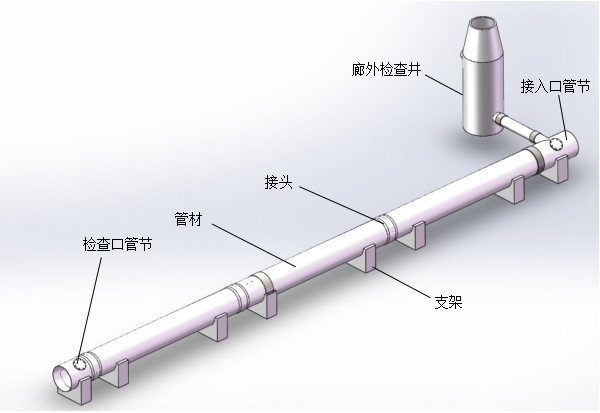 可供以下管件,材質(zhì)與主管材一致:彎管、三通、變徑管,檢查口管節(jié)、接入口管節(jié),其中檢查口管節(jié)和接入口管節(jié)為專為廊內(nèi)排水管道設(shè)計(jì)。