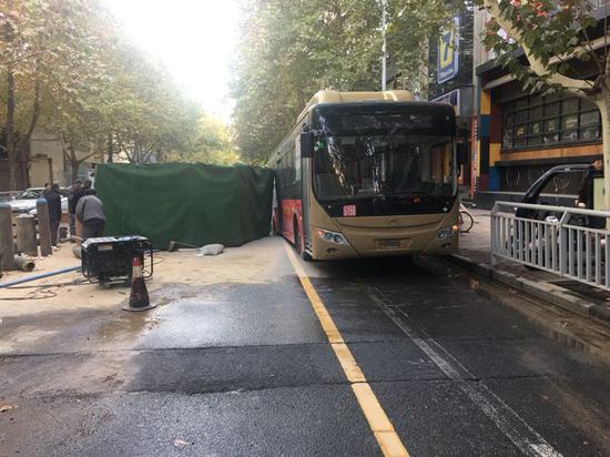 11月18日下午,記者從鄭州交警一大隊獲悉,18日下午4時許,鄭州市黃河路與經(jīng)七路路口向南50米處路面塌陷,行徑此處的一輛公交車陷到坑中無法動彈,致使原本就因熱力搶修施工而部分占用的經(jīng)七路機(jī)動車道被完全占用,其他機(jī)動車無法通行。