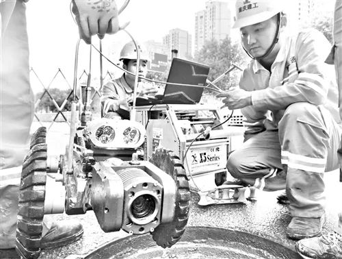 地下管網深處地下,若開挖,工程量大,耗時、耗力,并且對交通影響大。王智彬介紹,在管網修復中,他們采用非開挖修復技術。但因這些管網口徑小,工人無法進入,為此,他們引入了機器人,協助工作。