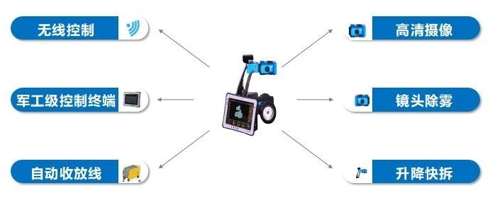 提供手機 APP,可通過手機控制機器人,觀察管道內部細節。線纜車具備智能自動收線、自動放線的控制功能,減少管道巡檢人力投入,操作者可以更專注于機器人的控制和管道內部情況的觀察。