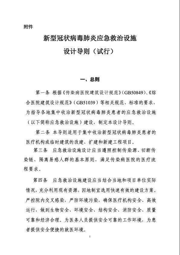 為積極應對新型冠狀病毒肺炎疫情防控嚴峻形勢,指導做好傳染病應急救治設施建設,切實滿足疫情防控實施保障需要,國家衛生健康委會同住房和城鄉建設部編制印發了《新型冠狀病毒肺炎應急救治設施設計導則(試行)》(以下簡稱《導則》)。