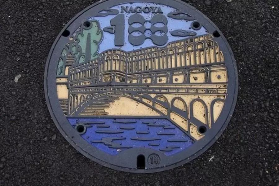 接著,這些工程師把這樣的井蓋帶到了其他小城市和地區(qū),所以至今在一些小城鎮(zhèn)里還能看到寫有“東京設計”或者“NAGOYA設計”的井蓋。