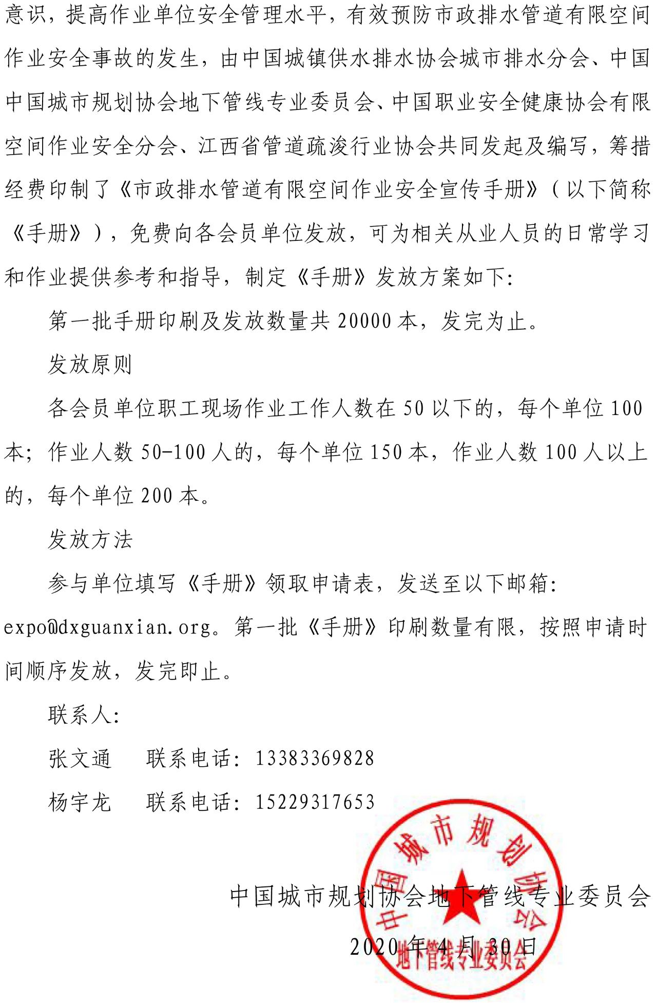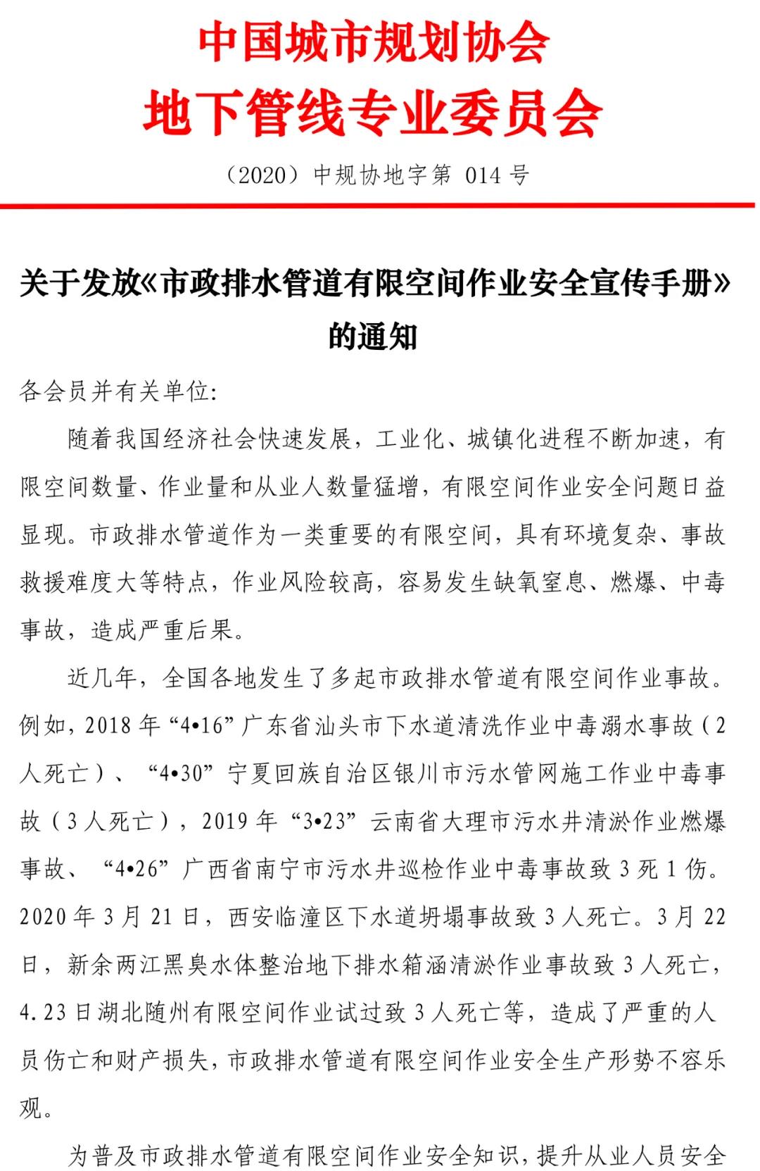 協(xié)會(huì)關(guān)于發(fā)放有限空間安全作業(yè)宣傳手冊的通知