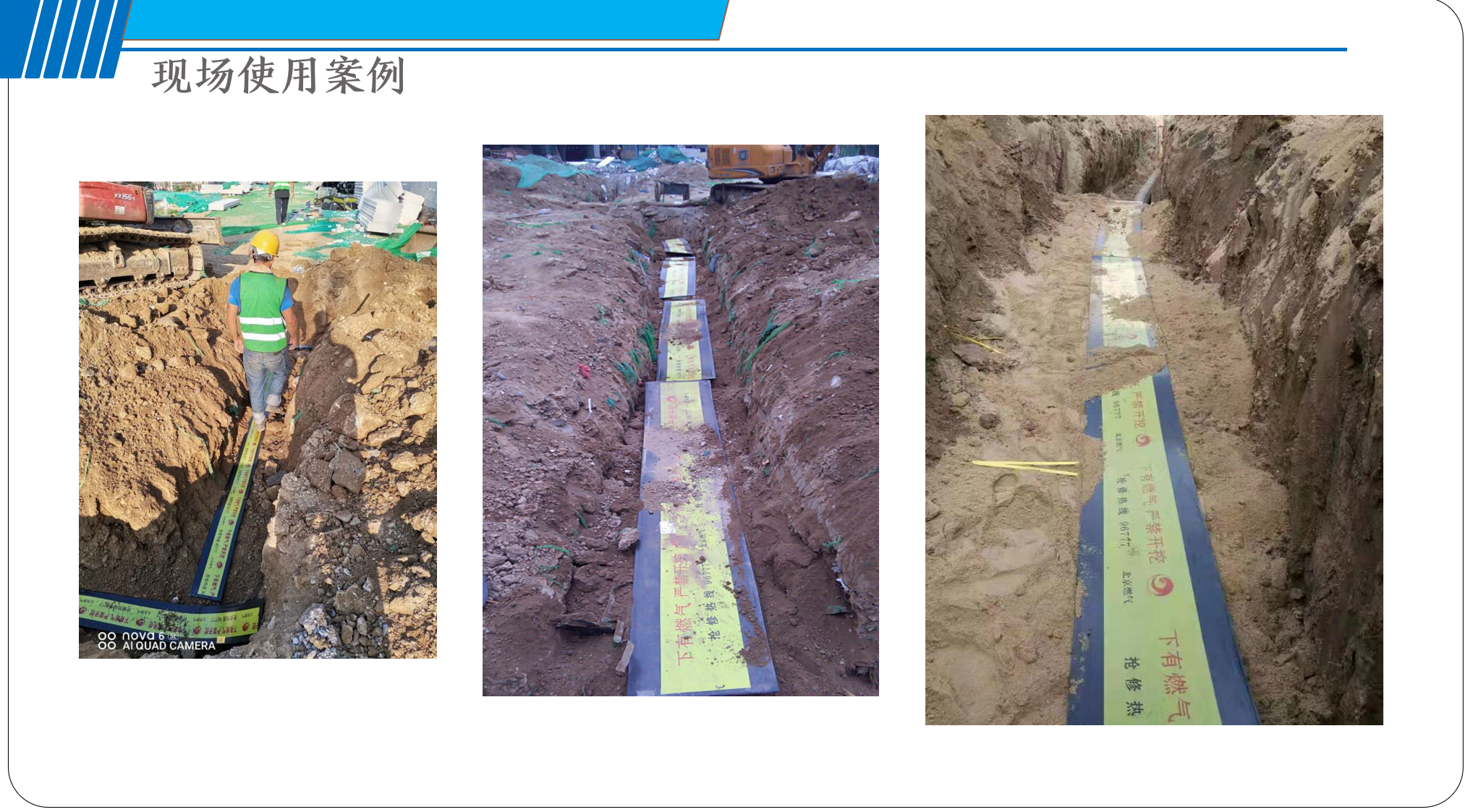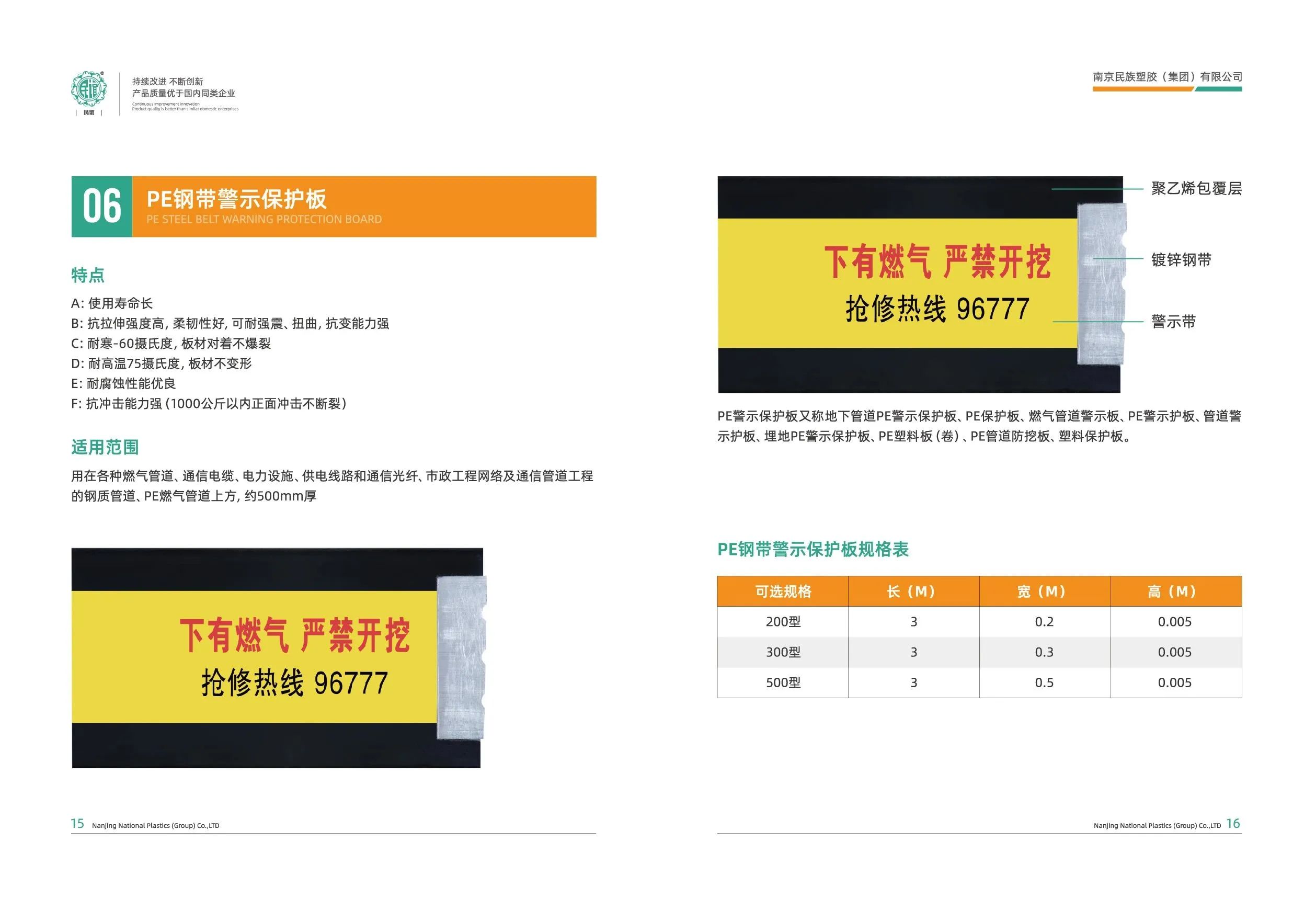 也是北京燃氣集團、中國燃氣集團、港華燃氣集團、華潤燃氣集團(2017-2020)、新奧燃氣集團,上海燃氣、沈陽燃氣等大型燃氣公司的戰略合作伙伴。我公司是生產的PE鋼帶保護警示板,廣泛用于北京燃氣集團地下管網鋪設,北京大興機場、雄安新區建設。