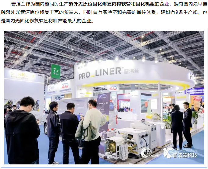 2023年11月22日-24日,備受期待的2023第十屆上海國際管網展覽會在上海國家會展中心盛大開幕,展會云集了300余家管網領域的優秀企業,展示了諸多前沿技術與優質解決方案,普洛蘭以非開挖紫外光固化修復一體化解決方案為核心,展示諸多排水類及給水類非開挖固化修復產品,吸引了眾多客戶駐足參觀。
