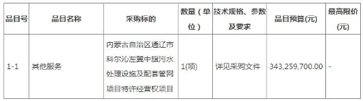 合同包1(內蒙古自治區通遼市科爾沁左翼中旗污水處理設施及配套管網項目特許經營權項目):
