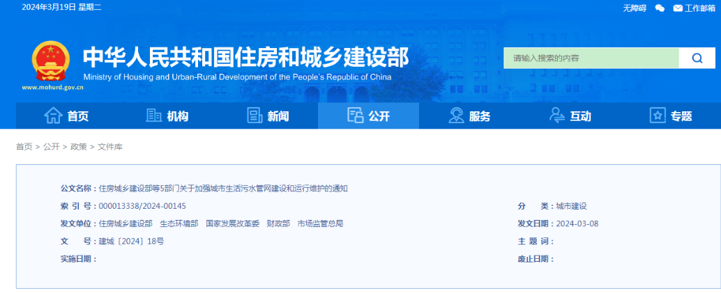 近日,住房城鄉建設部、生態環境部等5部門發布關于加強城市生活污水管網建設和運行維護的通知。