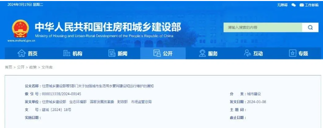 3月18日,《關于加強城市生活污水管網建設和運行維護的通知》(以下簡稱《通知》)發布。