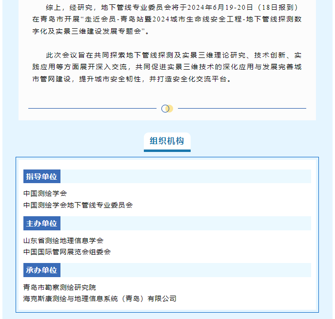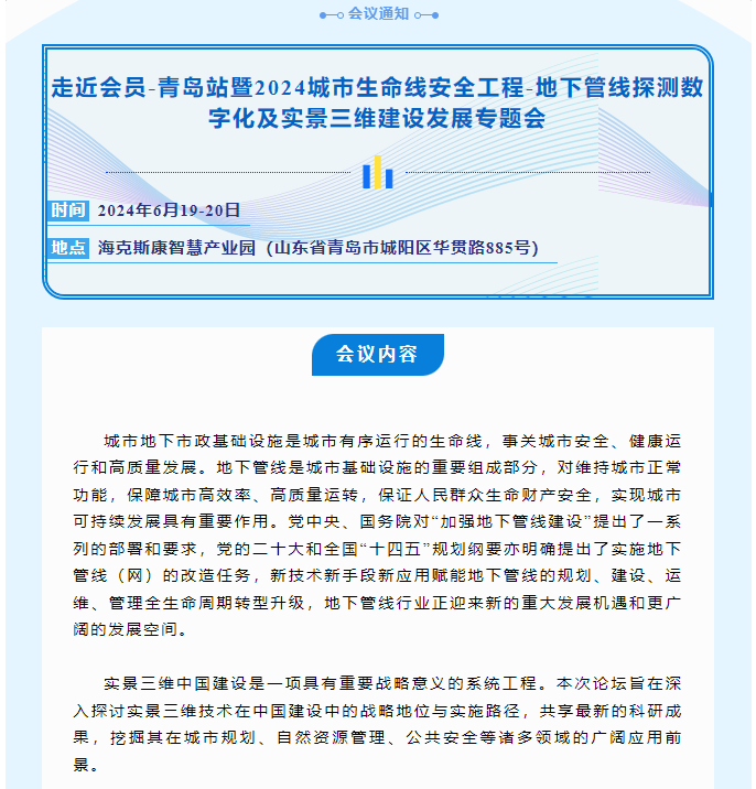【會議通知】走近會員-青島站暨2024城市生命線安全工程-地下管線探測數字化及實景三維建設發展專題會