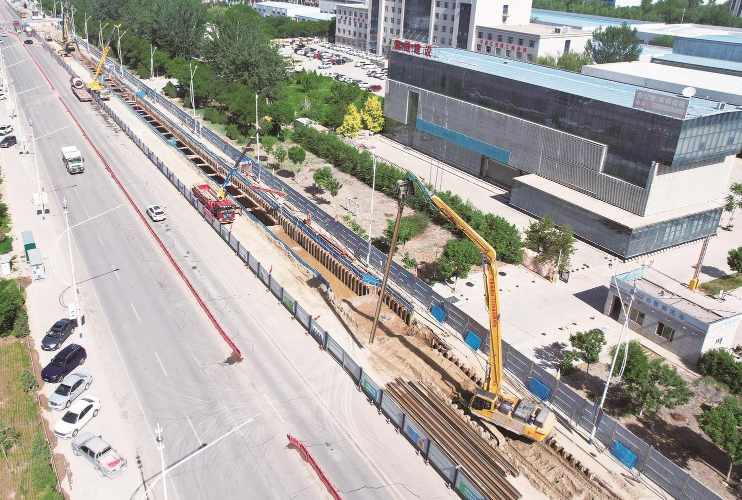 銀川市第一再生水廠再生水利用管網(wǎng)(一期)工程正在如火如荼推進(jìn)(5月16日攝)。
