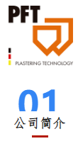 太倉培福德機械設備有限公司是德國可耐福PFT在中國成立的全資公司。五十多年來,PFT始終堅持創(chuàng)新,保證所有產品和機器系統(tǒng)在建筑行業(yè)一直處于領導地位。通過61個國家的350個銷售和服務站,PFT在建筑工地上實現和確保了“流動的生產力”。PFT的機器在世界范圍內被廣泛地應用于灰泥、石膏、砂漿、自流平和涂料等建筑領域。PFT的產品主要分為輸送泵、灰漿機、攪拌機、無氣噴涂機、石膏噴涂機;其應用領域涉及天花、墻面、地面和保溫系統(tǒng)的抹灰、噴涂、自流平、填縫和灌漿技術。