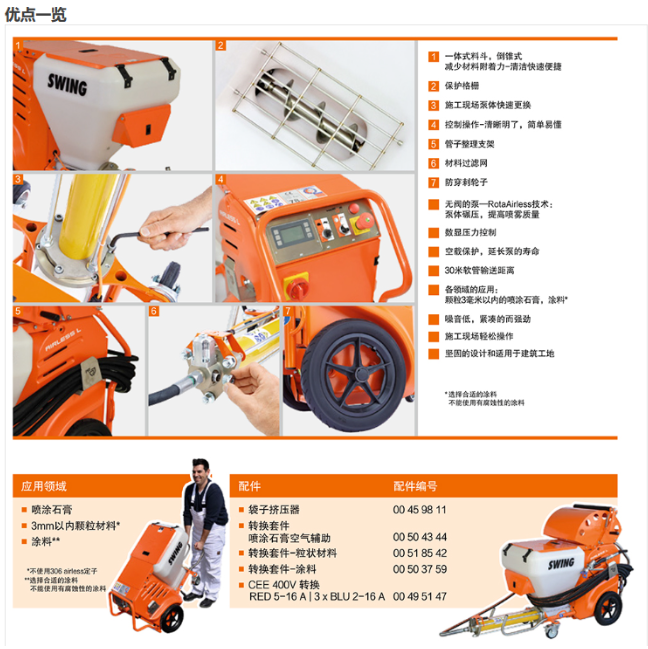 流平混合物、修補灰泥、SPCC和許多其它的材料都可通過該機器進行有效的應用。