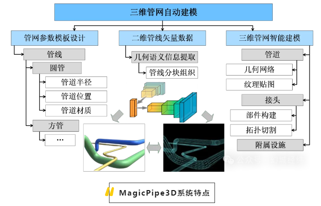 地下管網是保障城市運行的基礎設施和“生命線”。隨著實景三維中國建設的推進,構建地下管網三維模型與地上融合的數字孿生場景,對于提升智慧城市管理至關重要!針對現有三維管線建模數據差異大、建模交互弱、模型效果差、缺乏語義信息等缺陷,武漢幻城經緯科技有限公司從底層開發了參數化三維管網建模系統MagicPipe3D。