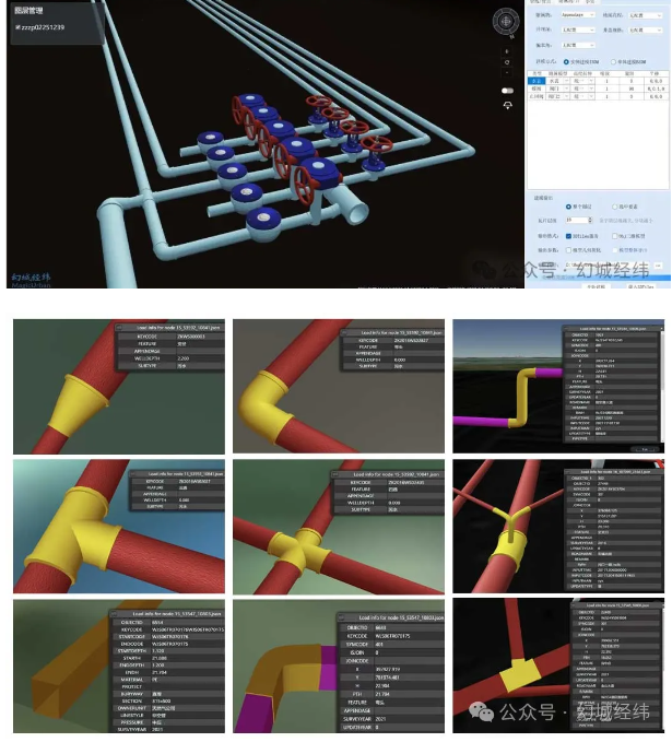 (3)精細化:支持各種復雜的管道接頭構建算法,以及豐富的附屬物模型庫,實現管道、接頭、附屬物立體銜接,并綁定語義查詢信息;