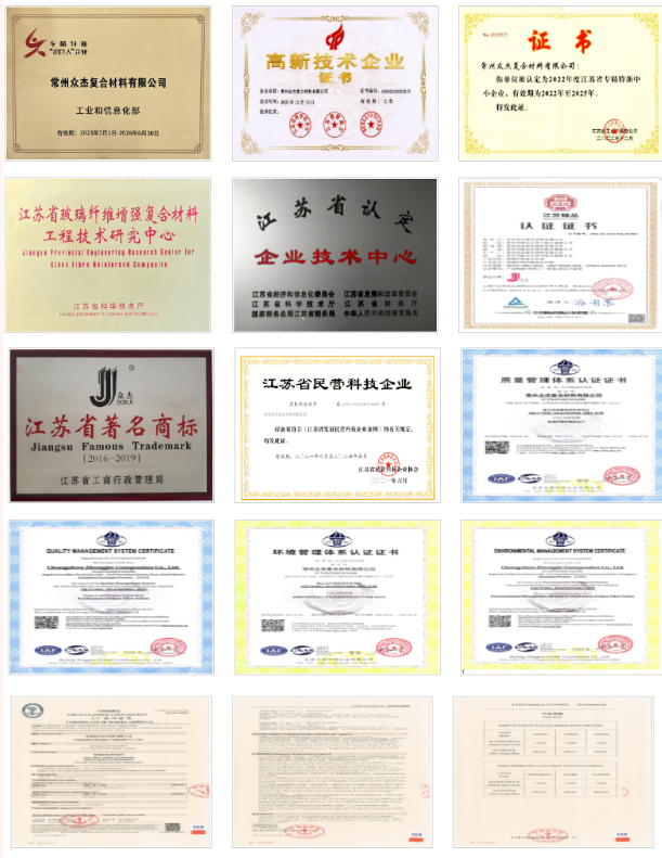 公司被認定為“國家高新技術企業”、“國家專精特新小巨人企業”、“江蘇省民營科技企業”、“江蘇省工業企業質量信用A級企業”、“江蘇省專精特新中小企業”,通過了ISO9001質量管理體系、ISO14001環境管理體系的認證和國家知識產權管理體系認證,建有“省級企業技術中心”和“江蘇省玻璃纖維增強復合材料工程技術研究中心”,增強了公司玻璃纖維復合材料制造技術創新能力。主要產品通過了中國船級社CCS的認證,“眾杰”牌商標被認定為“江蘇省著名商標”,“眾杰”牌產品被認定為“江蘇省精品”和“常州市名牌產品”,主要產品被認定為“常州市高新技術產品”、“常州市制造創新產品”,授權專利30余項。