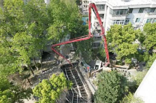 安建大北區積水點治理工程現場,圖為箱涵底板及側墻混凝土澆注。合肥水務集團供圖